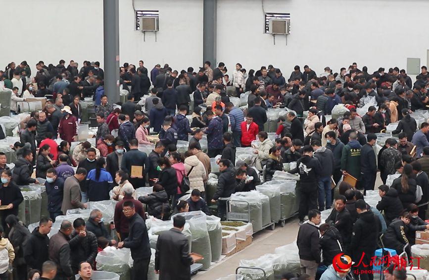 浙南茶叶市场内人头攒动。人民网 张帆摄