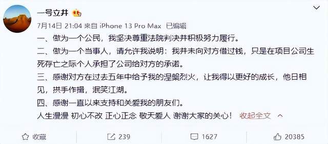 在去年7月份的时候,李亚鹏欠债4000万案就已经终审败诉了,当时他还发了微博回应了此案,表示会坚决尊重法院判决并积极努力履行,但心里头还是有点儿不服判决,觉得自己很委屈。