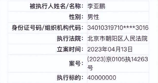 实际上这笔4000万的债务,已经不是什么新闻了,但凡稍微了解此事的人应该都很清楚,这笔债务并非李亚鹏个人债务,因为涉及到了公司,以及他的哥哥李亚炜。