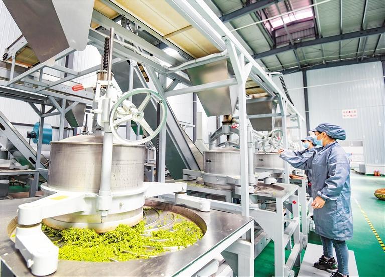 4月19日,工人在瓮安县黄红缨茶业基地车间加工茶叶。黄红缨茶业依托1.2万亩茶园发展集约规模化生态农业,已建成精制茶加工厂1.28万平方米,年产能800吨,年产值超2.5亿元。