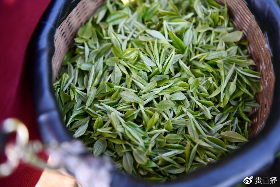 湄潭云贵山茶园里刚采摘下来的茶青
