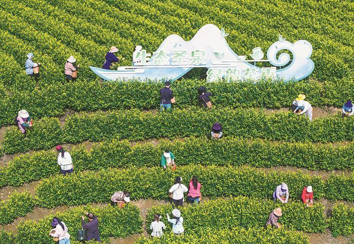 5月10日,在安徽省芜湖市繁昌区繁阳镇繁昌圣泉养殖专业合作社茶场,职工在参加茶叶采摘劳动技能竞赛。当天上午,繁昌区总工会、繁昌区妇联和繁阳镇人民政府联合举办“绿韵茶香 指尖逐梦”繁阳镇茶叶采摘劳动技能竞赛,参赛的职工群众以赛促学比拼“指尖技艺”,体验采茶制茶工艺,推动茶旅产业融合,赋能乡村全面振兴。