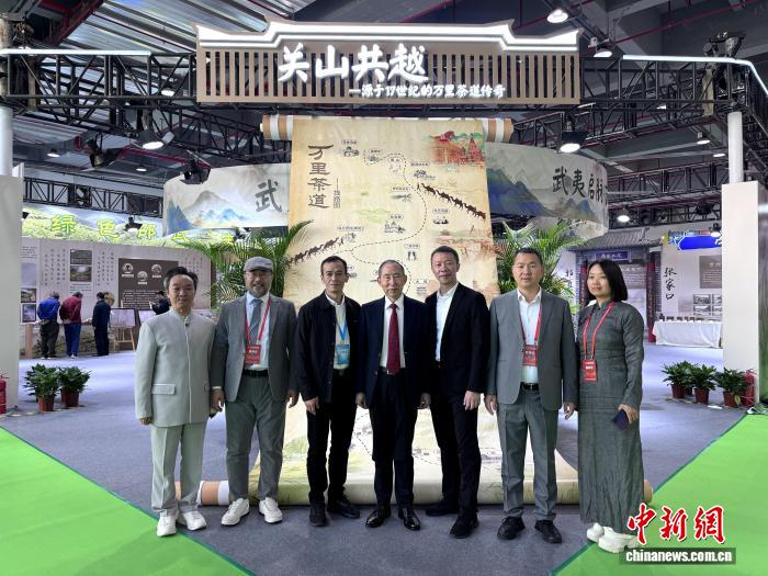 图为俄中文化交流协会执行会长乔翔鹏(左二)与嘉宾在展馆内合影。受访者供图。乔翔鹏表示,将通过“武夷山水·茶空间”向世界讲述武夷山茶的故事,进一步推广中华茶文化与非遗技艺。